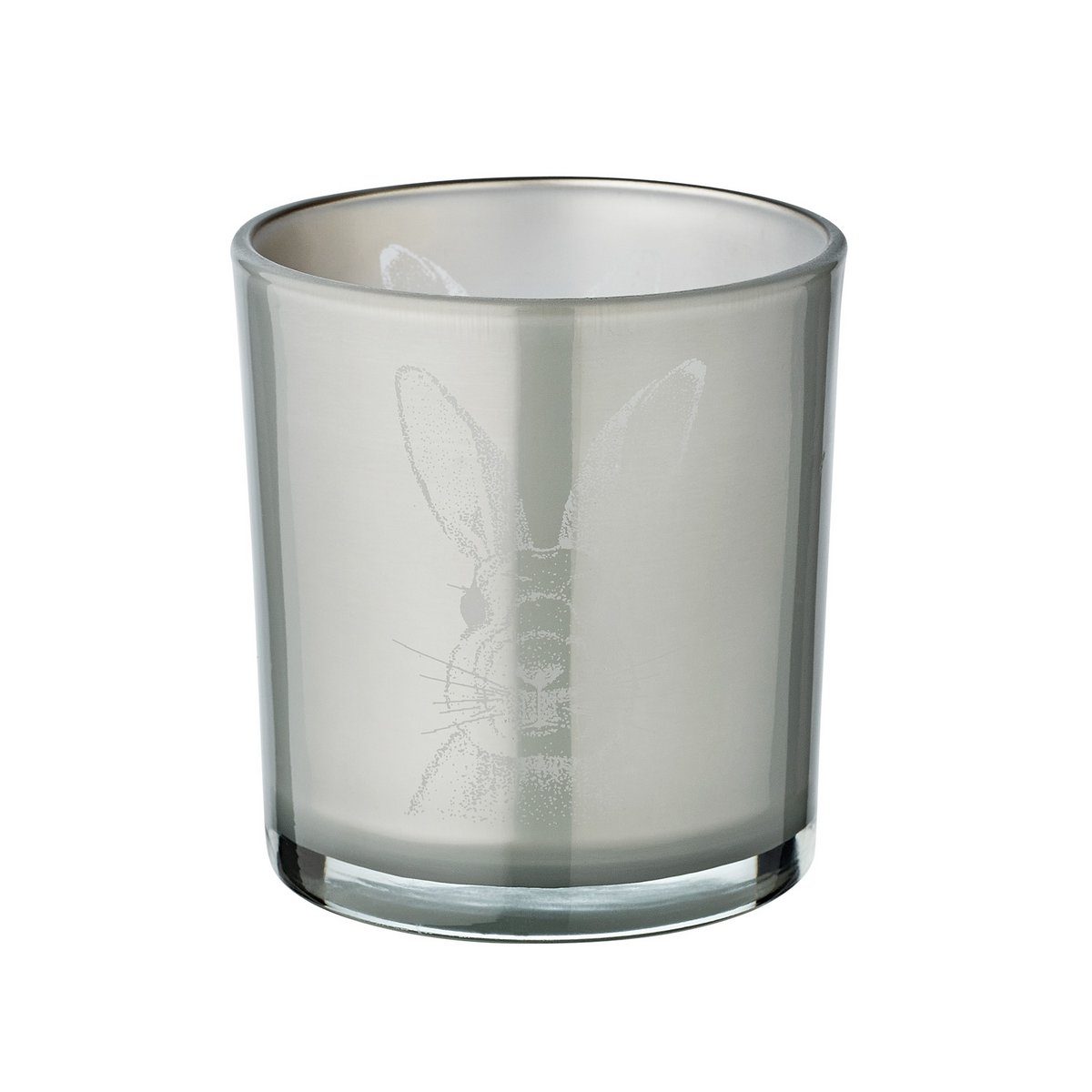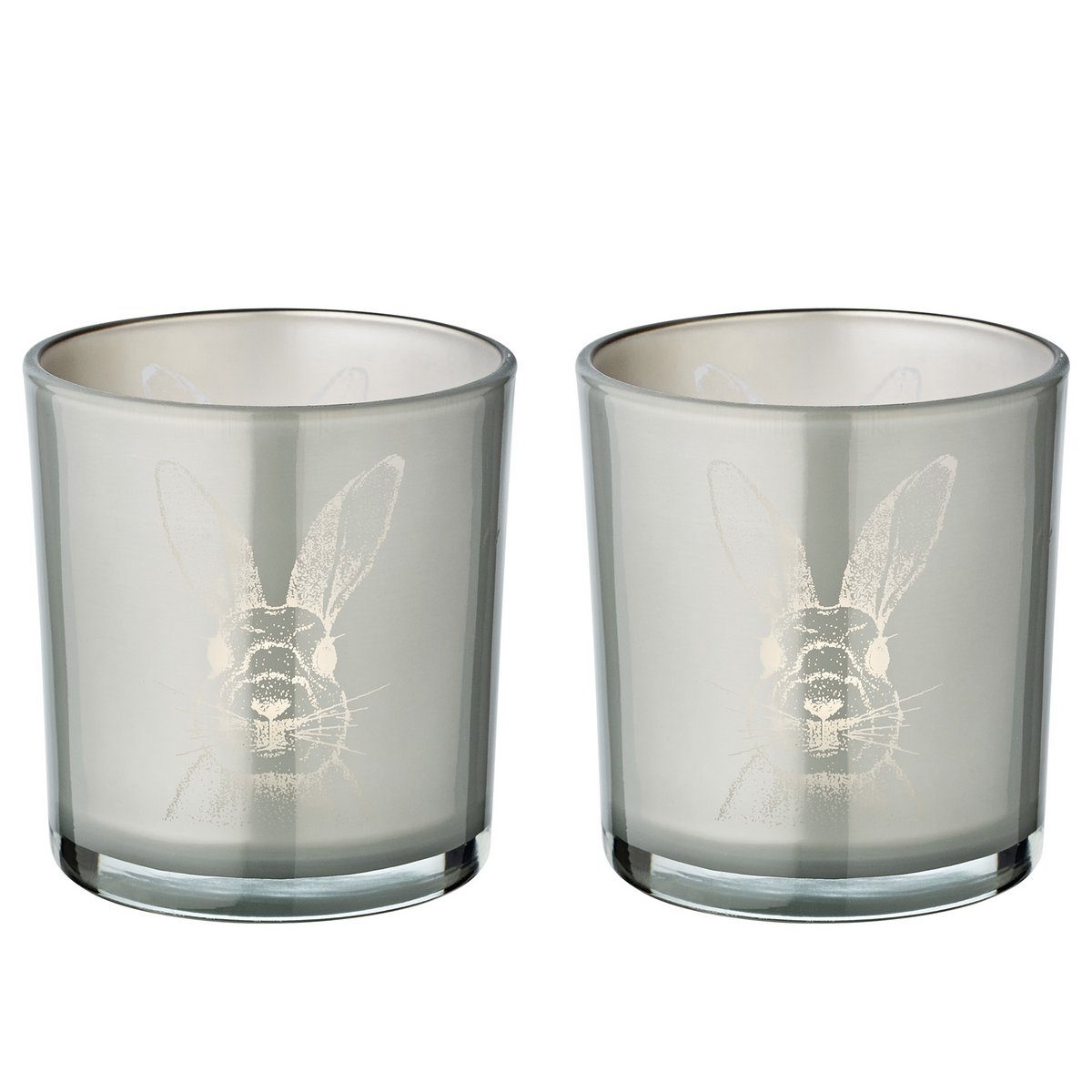 2er Set Teelichtglas Hase (Höhe 8 cm, ø 7,5 cm), in Grau, Teelichthalter Windlicht mit Hasen-Motiv