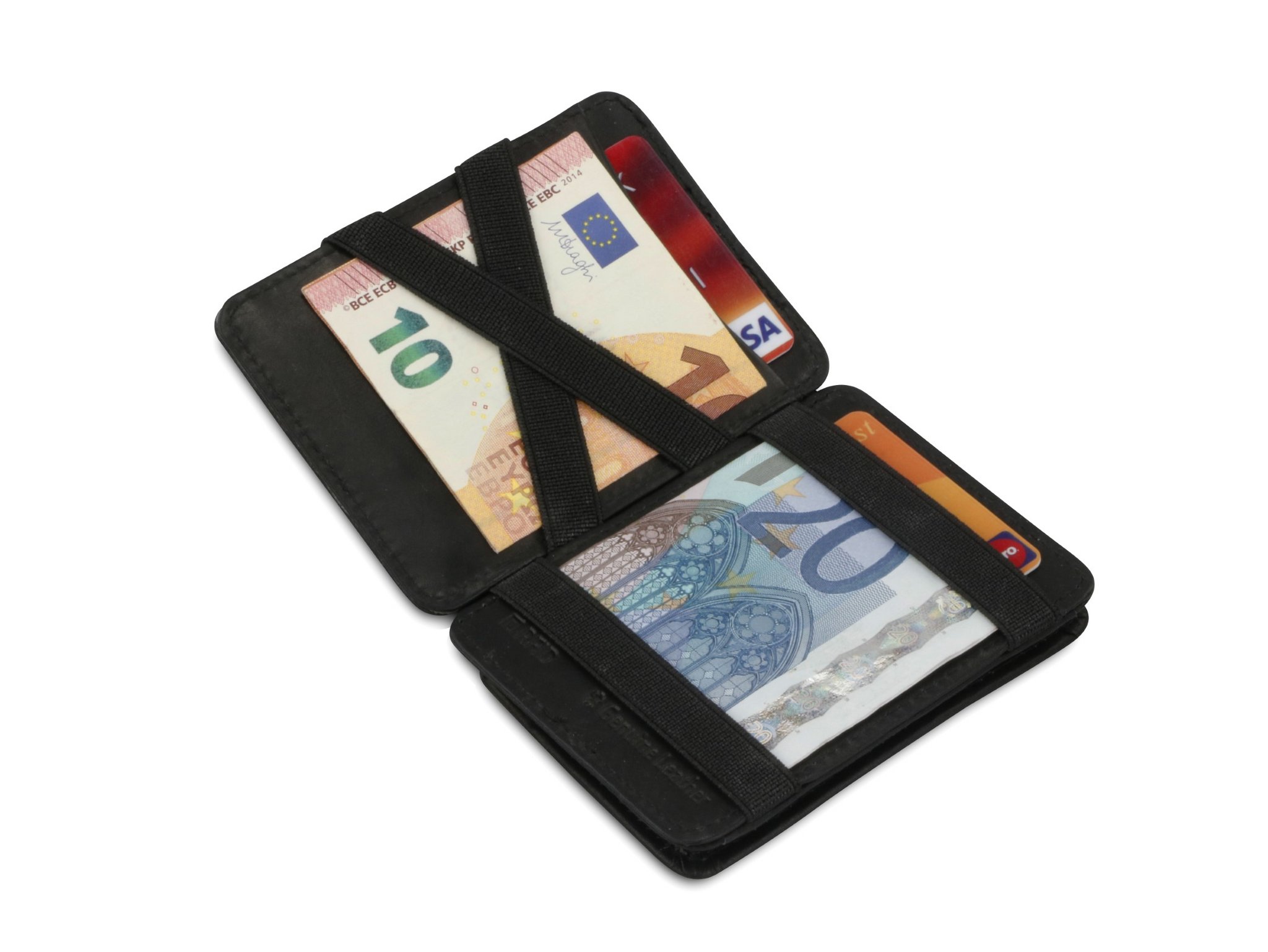 Die Hunterson Magic Wallet wird sorgfältig von Hand aus 100 % echtem, weichem Premium-Rindsleder gefertigt. Wie funktionieren diese faszinierenden Geldbörsen? Ganz einfach: Öffnen Sie die Brieftasche, legen Sie Ihr Geld hinein und schließen Sie sie wieder. Drehen Sie die Lederbörse auf die andere Seite und erleben Sie, wie die Magie ihren Effekt entfaltet! Die Magic-Flap-Technik bewahrt Ihr Bargeld sicher hinter den Riemen auf. Zusätzlich finden Sie im Inneren weitere Kartenfächer, die Ihnen noch mehr Platz bieten. Wir haben das ursprüngliche Magic Wallet Strap-System weiterentwickelt und dabei sowohl die Robustheit als auch das Design verbessert. Jedes einzelne Magic Wallet wird von Hand kontrolliert, um unseren hohen Qualitätsstandards zu entsprechen. Zudem sind unsere Geldbörsen mit einem nahtlosen RFID-Schutz ausgestattet, der Ihre sensiblen Daten effektiv schützt.