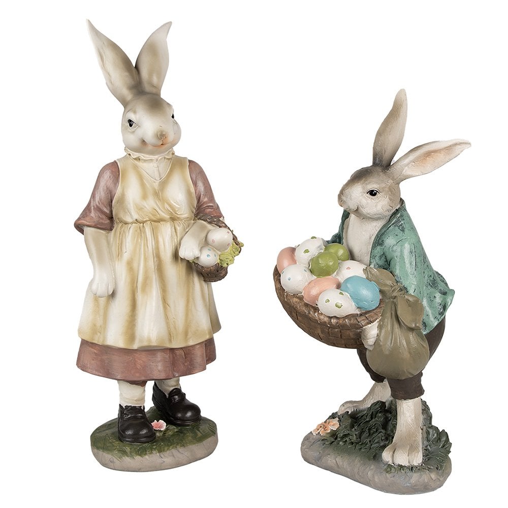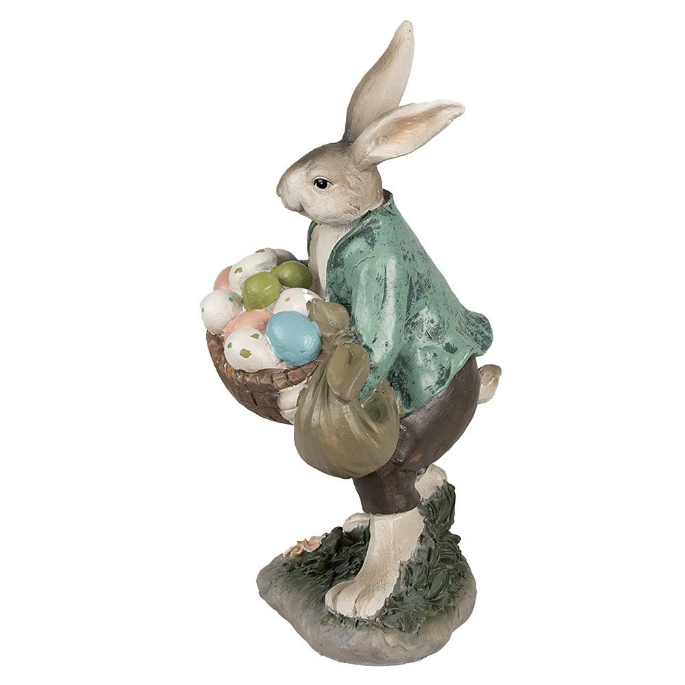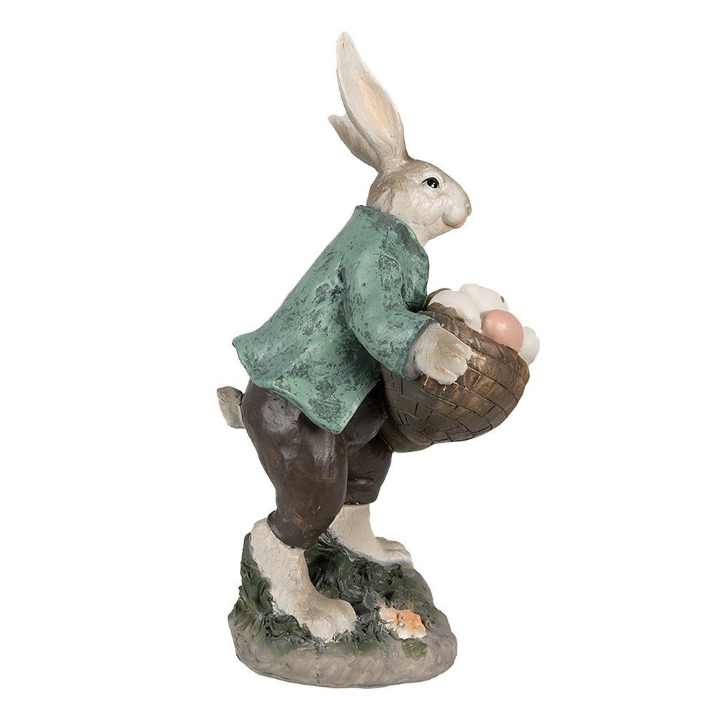 Bild Kaninchen 32 cm braun grüner Polyresin Osterdekoration. Schöne dekorative Statue eines braunen Kaninchens mit einem Korb im Landstil. Auch schön als Dekoration für Ostern.