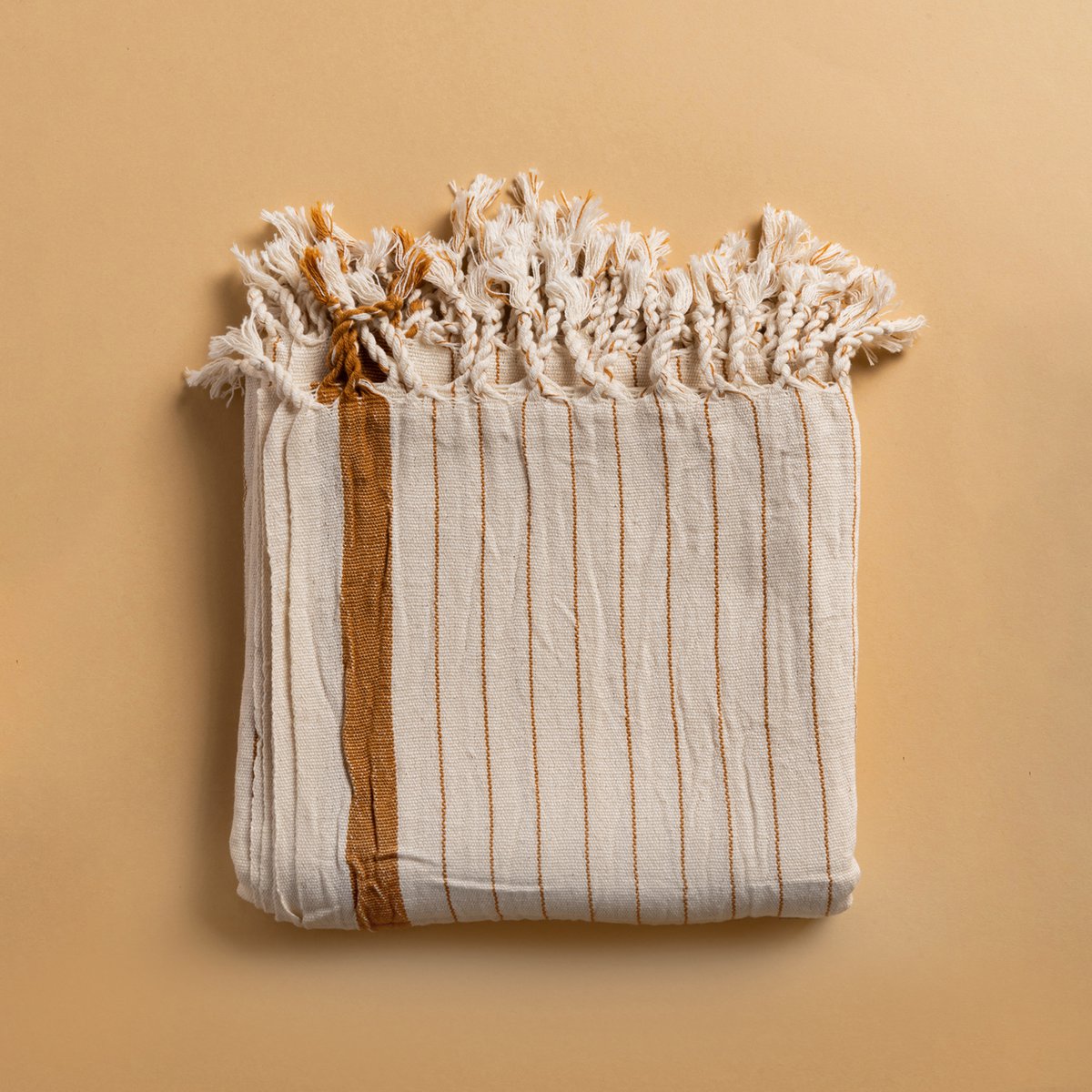 This artisanal masterpiece is meticulously crafted from start to finish. Every thread is touched by skilled hands, meticulously washed, and sun-dried to perfection, while the edges are delicately curled to create the classic peshtemal look.