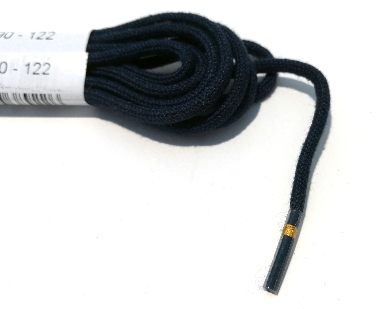 Der Rundsenkel besteht aus einer reissfesten Seele, dem Kern des Senkels und einer optisch ansprechenden Ummantelung aus Baumwollgewebe.