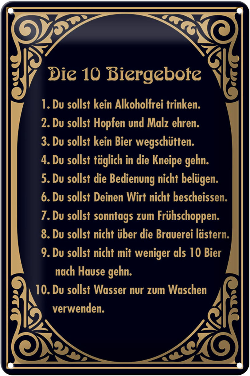 Schild Blech 20x30cm – Made in Germany – 10 Biergebote Bier Metall Deko Blechschild