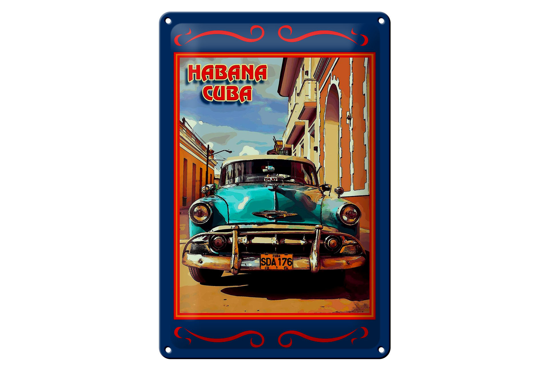 Schild Blech 20x30cm – Made in Germany – Habana Cuba blaues Auto