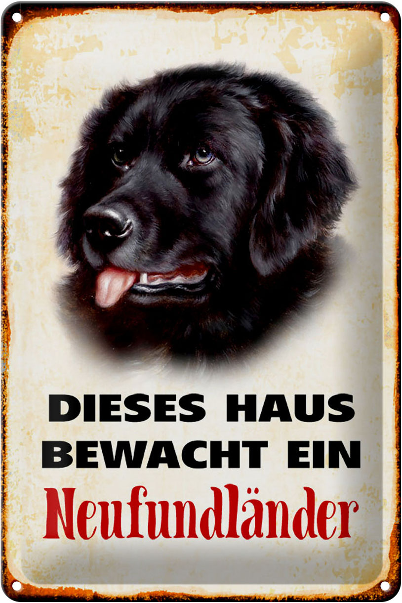Schild Blech 20x30cm – Made in Germany – Hund dieses Haus bewacht Neufundländer Metall Deko Blechschild