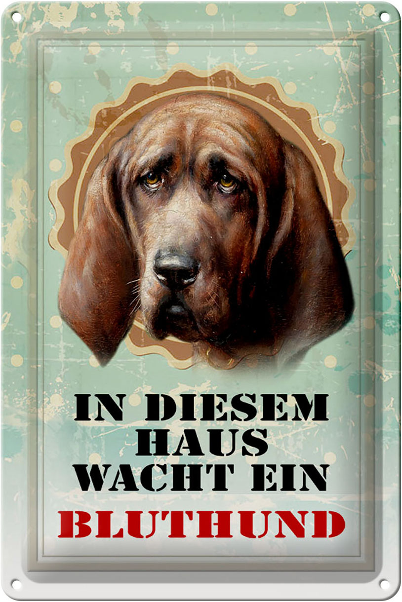 Schild Blech 20x30cm – Made in Germany – Hund in diesem Haus wacht Bluthund Metall Deko Blechschild