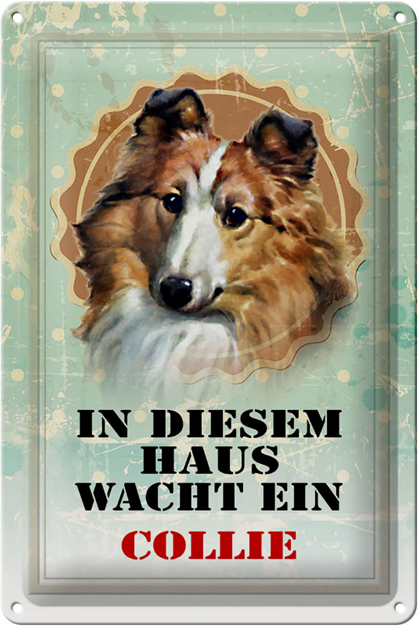 Schild Blech 20x30cm – Made in Germany – Hund in diesem Haus wacht ein Collie Metall Deko Blechschild