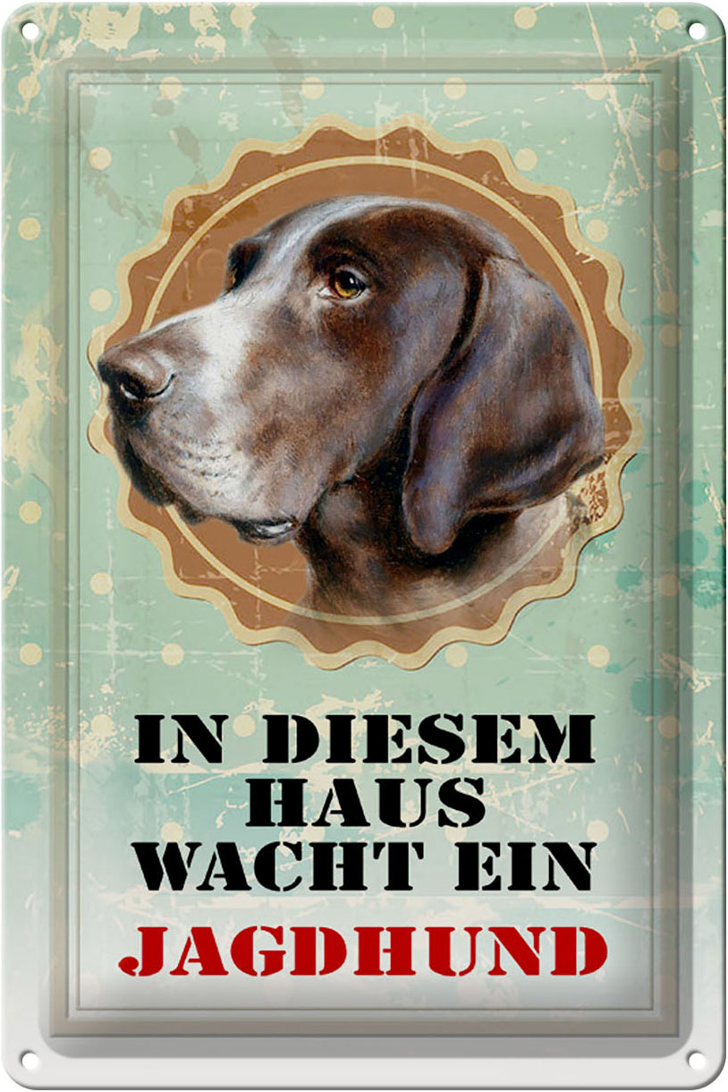 Schild Blech 20x30cm – Made in Germany – Hund in diesem Haus wacht ein Jagdhund Metall Deko Blechschild