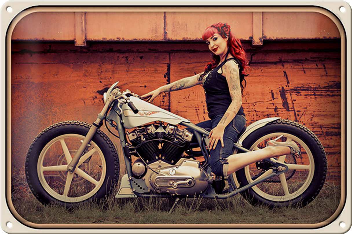 Schild Blech 20x30cm – Made in Germany – Motorrad Biker Girl Frau Pin up Metall Deko Blechschild