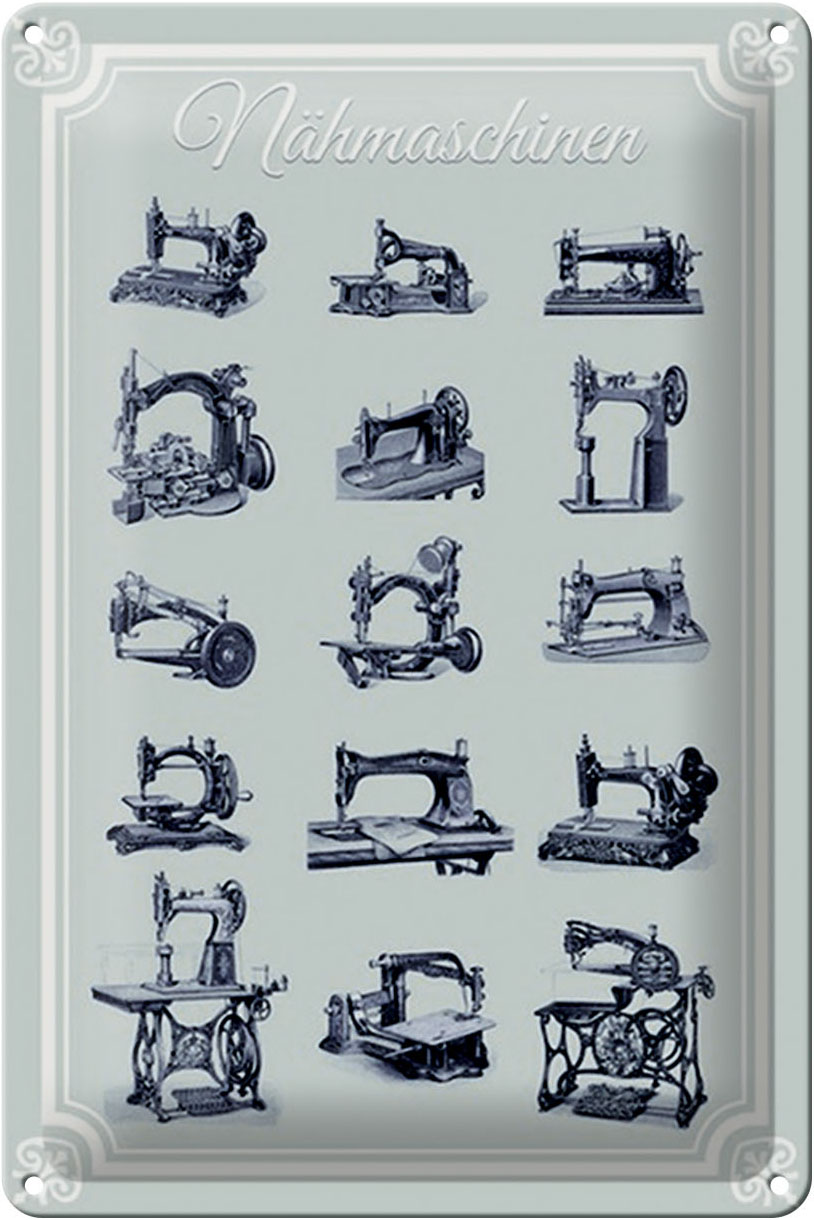 Schild Blech 20x30cm – Made in Germany -Nähmaschinen verschiedene Arten Typen Metall Deko Blechschild