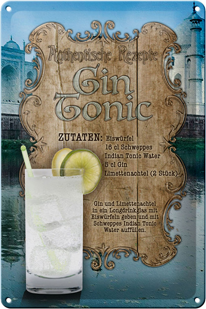 Schild Blech 20x30cm – Made in Germany – Rezept Gin Tonic Zutaten Indian Tonic Metall Deko Blechschild