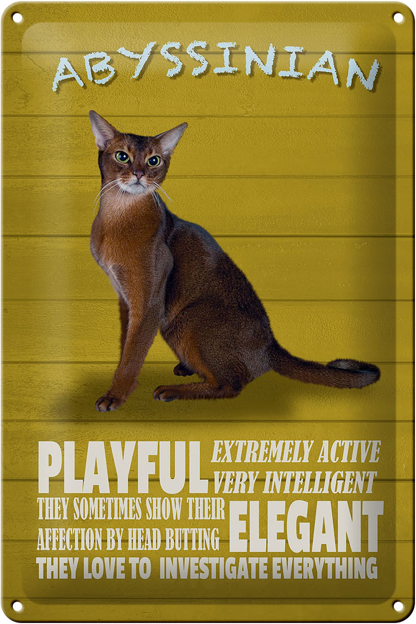 Schild Blech 20x30cm – Made in Germany – Spruch Abyssinian Katze playful elegant Metall Deko Schild