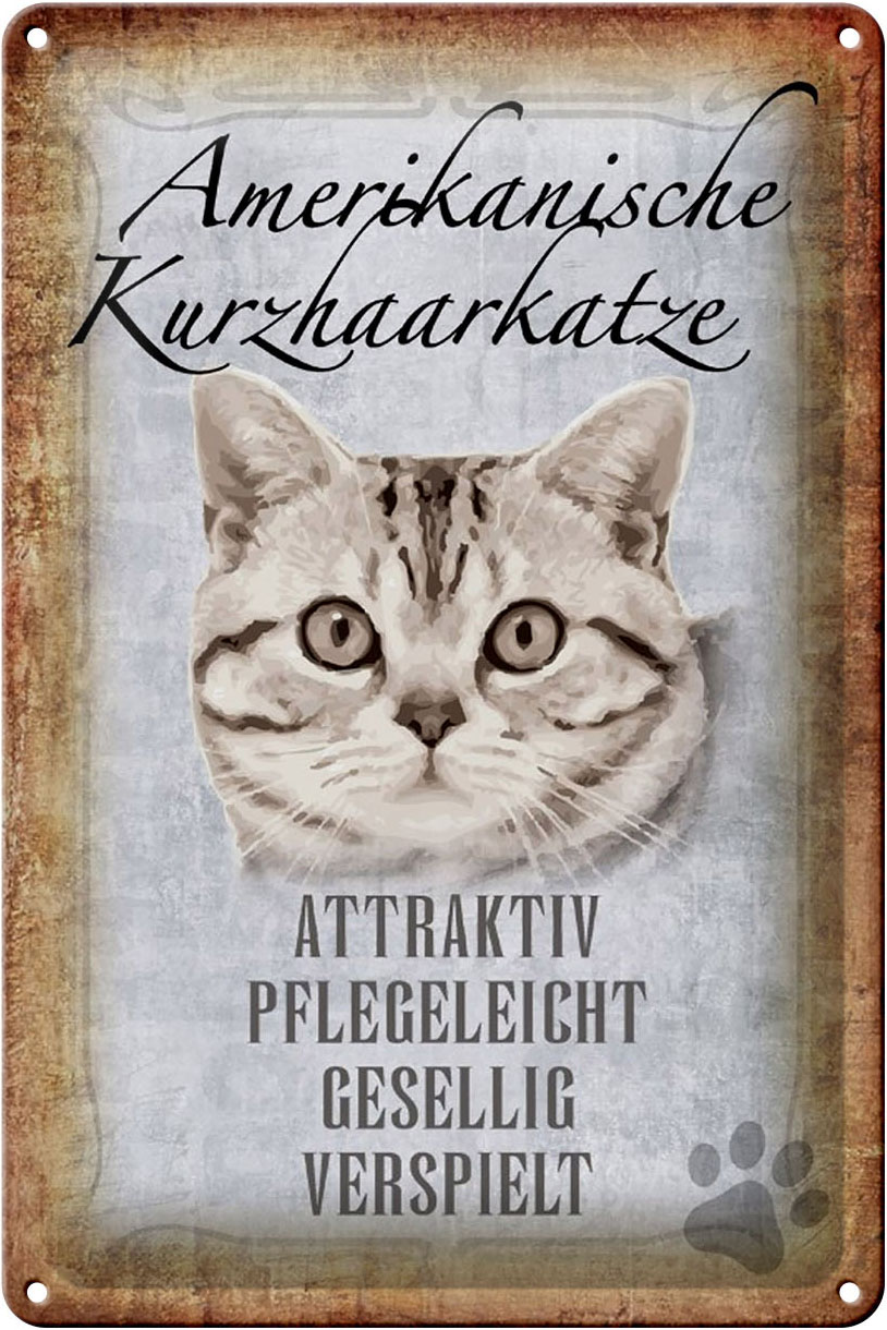 Schild Blech 20x30cm – Made in Germany – Spruch Americanische Katze Kurzhaar Metall Deko Schild