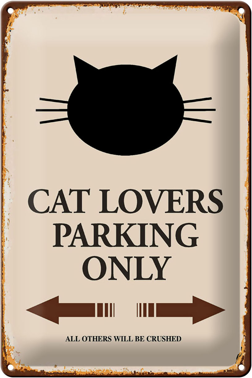Schild Blech 20x30cm – Made in Germany – Spruch cat lovers parking only Katze Metall Deko Blechschild