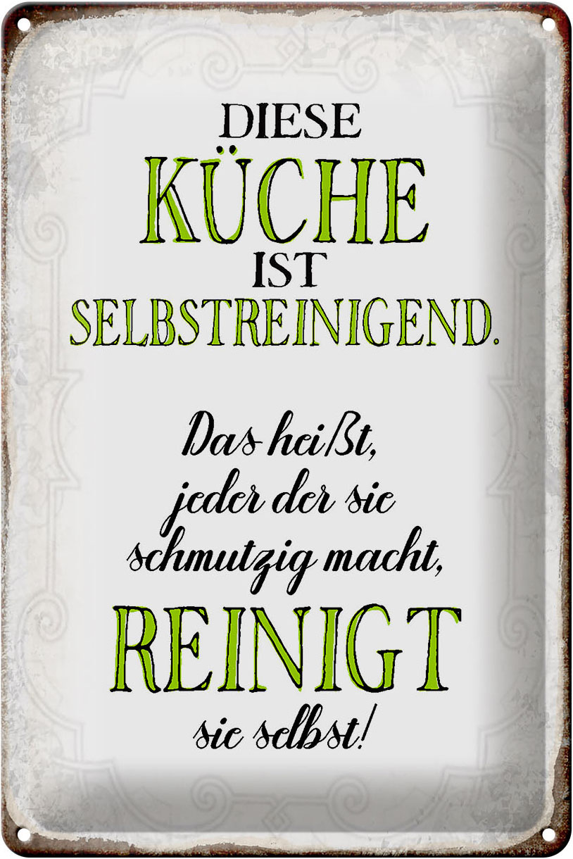 Schild Blech 20x30cm – Made in Germany – Spruch diese Küche ist selbstreinigend Metall Deko Blechschild