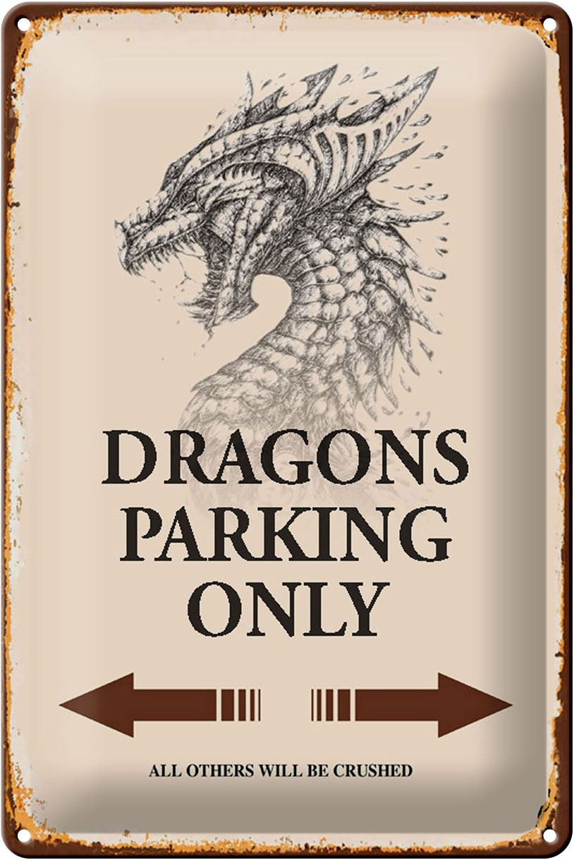 Schild Blech 20x30cm – Made in Germany – Spruch Dragons parking only Metall Deko Blechschild