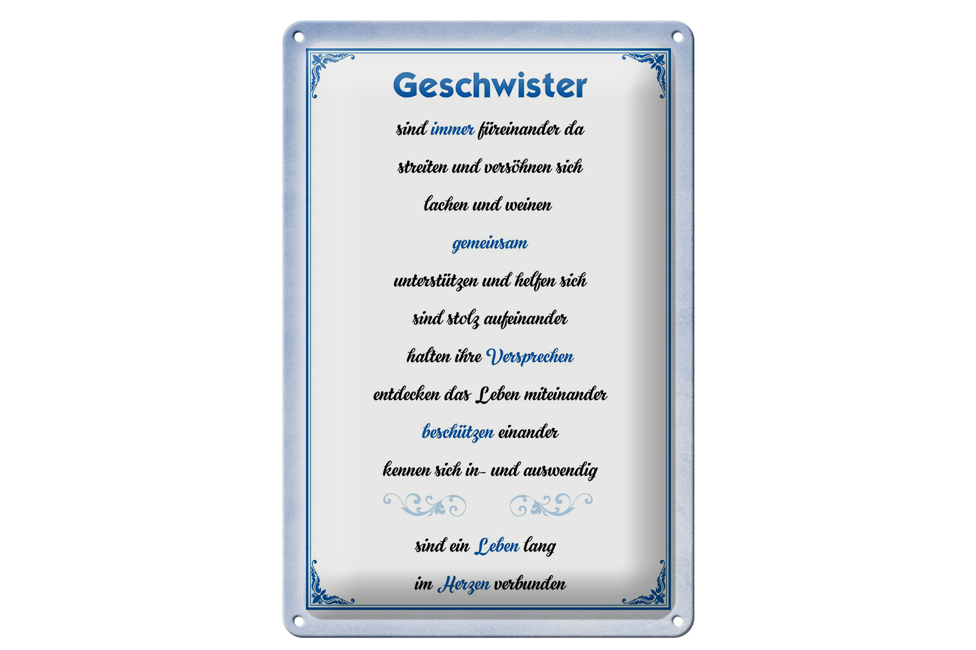 Schild Blech 20x30cm – Made in Germany – Spruch Geschwister immer füreinander da