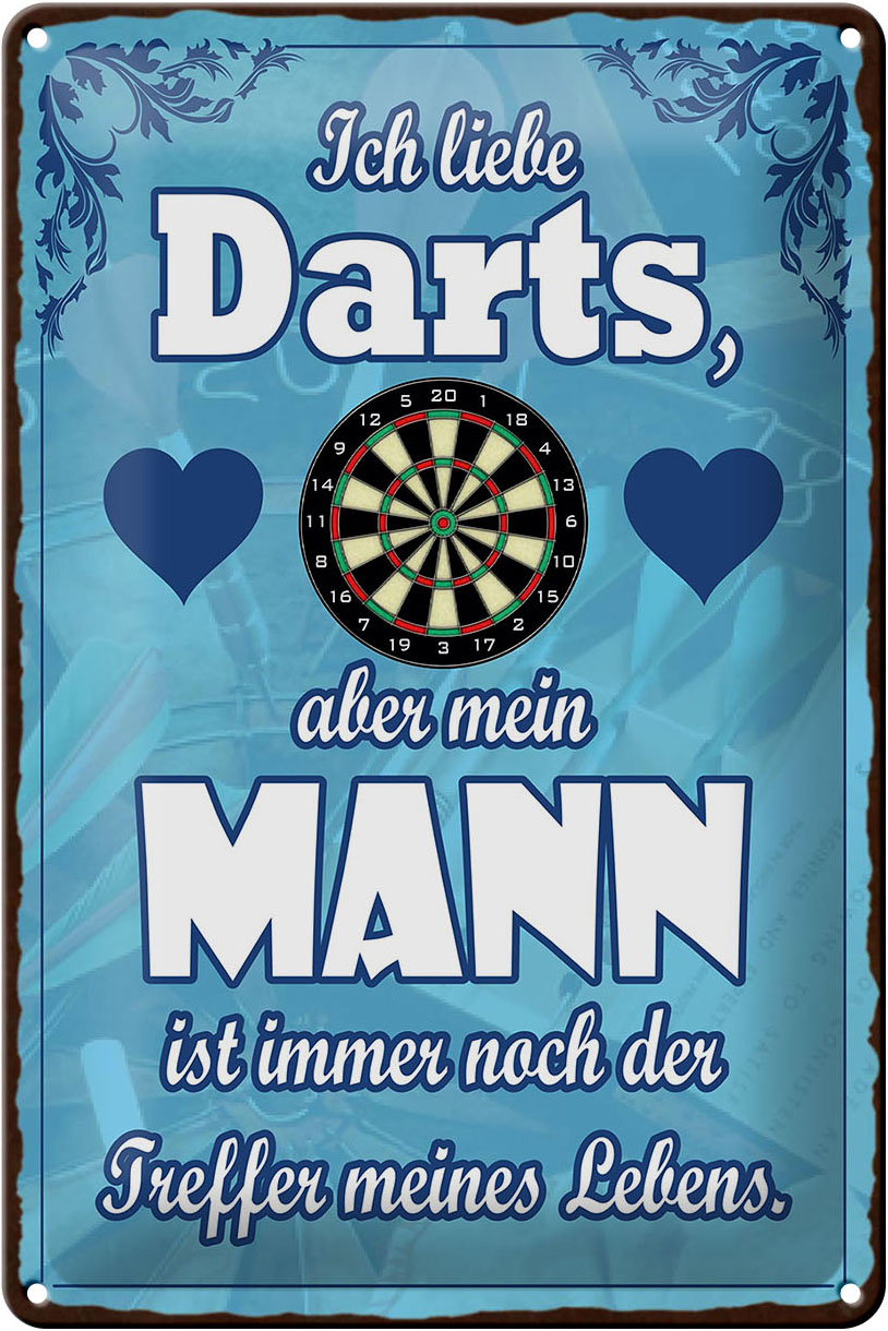 Schild Blech 20x30cm – Made in Germany – Spruch ich liebe Darts aber mein Mann Metall Deko Blechschild