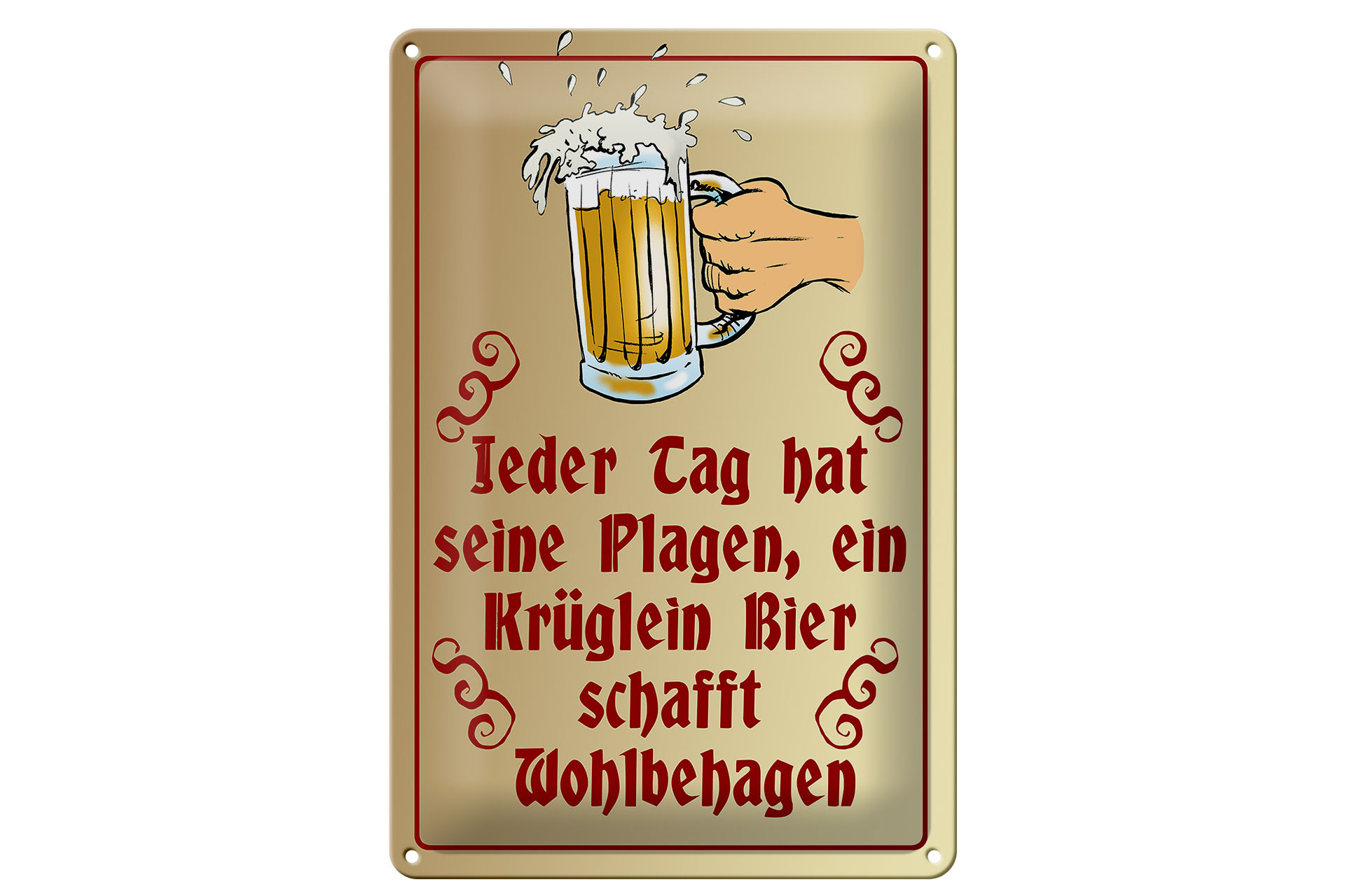 Schild Blech 20x30cm – Made in Germany – Spruch Jeder Tag hat seine Plagen Bier