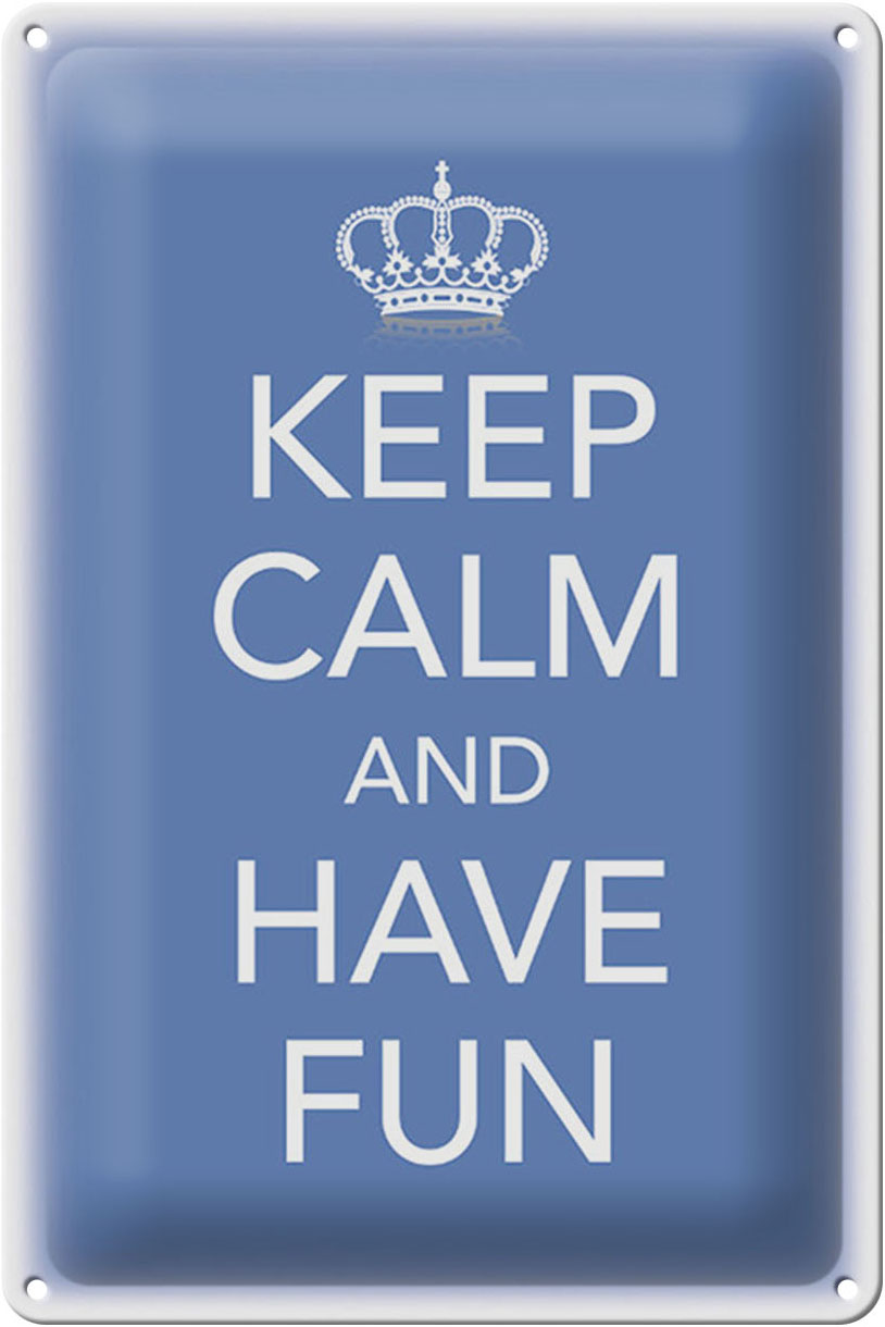 Schild Blech 20x30cm – Made in Germany – Spruch Keep Calm and have fun Krone Metall Deko Blechschild