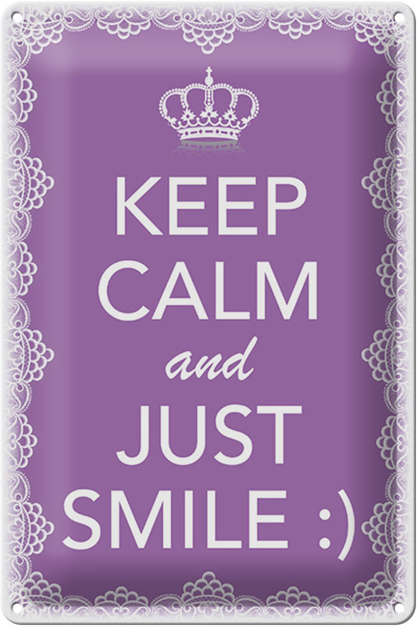 Schild Blech 20x30cm – Made in Germany – Spruch Keep Calm and just smile:) Metall Deko Blechschild