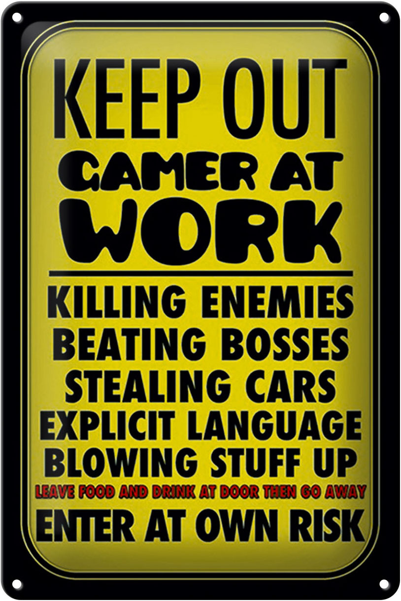Schild Blech 20x30cm – Made in Germany – Spruch Keep out gamer at work enter Metall Deko Blechschild