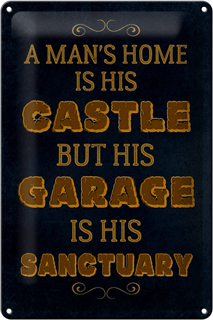Schild Blech 20x30cm – Made in Germany – Spruch Mans home Castle but Garage is Metall Deko Blechschild