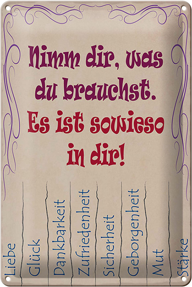 Schild Blech 20x30cm – Made in Germany – Spruch Nimm dir was du brauchst Liebe Metall Deko Blechschild