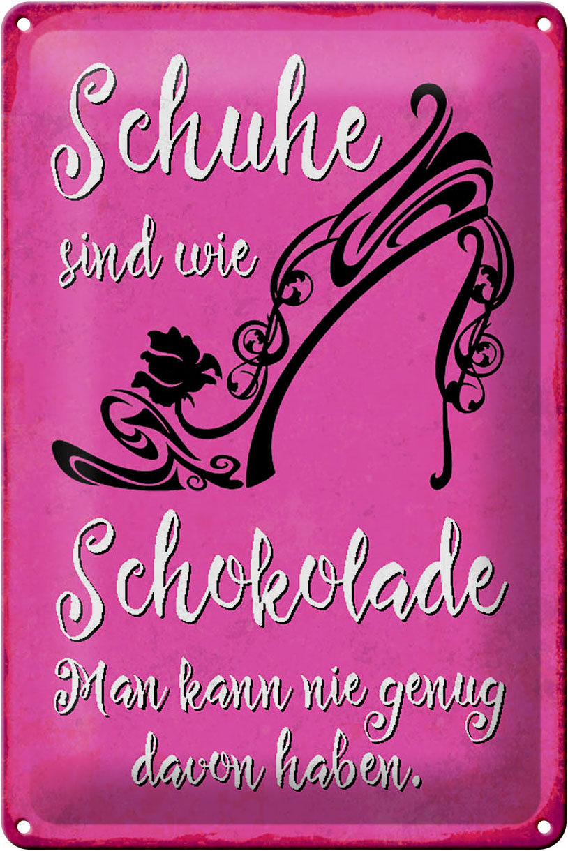 Schild Blech 20x30cm – Made in Germany – Spruch Schuhe sind wie Schokolade Metall Deko Blechschild