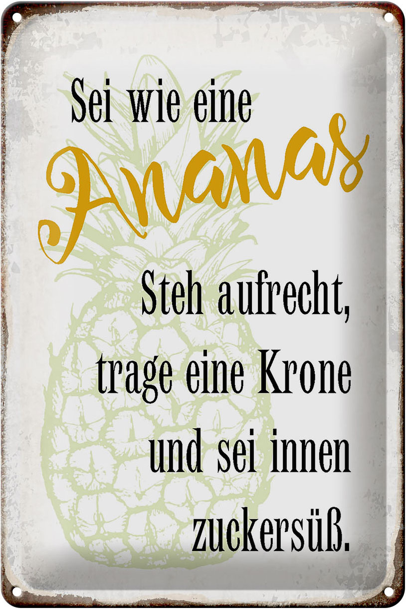 Schild Blech 20x30cm – Made in Germany – Spruch sei Ananas aufrecht zuckersüß Metall Deko Blechschild