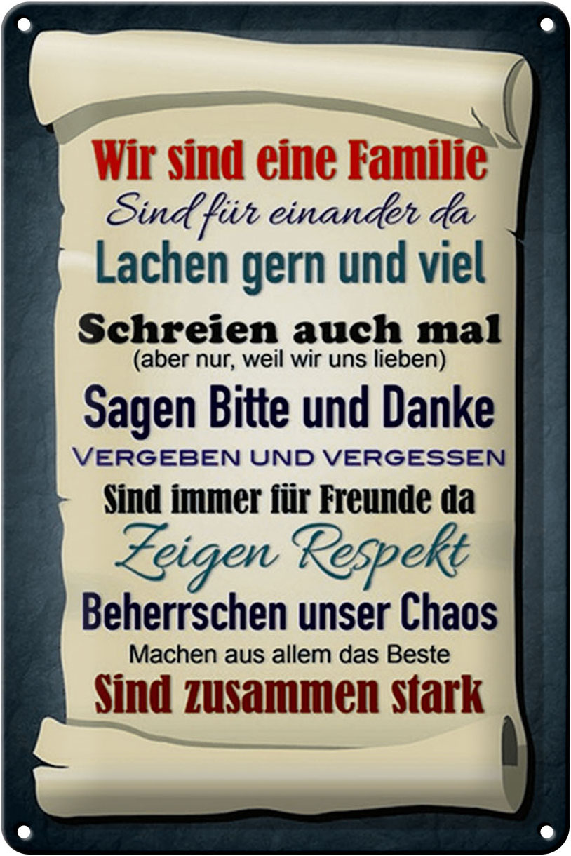 Schild Blech 20x30cm – Made in Germany – Spruch wir sind eine Familie zusammen Metall Deko Blechschild