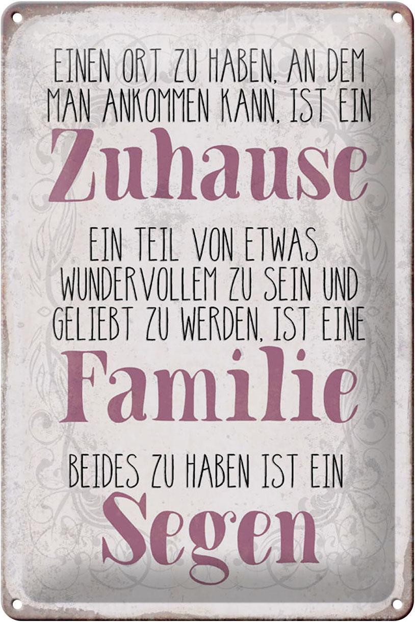 Das Blechschild in der Größe 20×30 cm bzw. 30×20 cm cm ist eine dekorative Metalltafel, die sich ideal für Ihr Zuhause eignet. Das gewölbte Design verleiht ihm eine ansprechende Optik und der hervorragende Druck sorgt für ein hochwertiges Erscheinungsbild. Mit abgerundeten Ecken und umgeschlagenen Kanten hat das Schild nicht nur einen ästhetischen Vorteil, sondern auch praktische vorgebohrte Löcher an allen vier Ecken zur einfachen Befestigung.