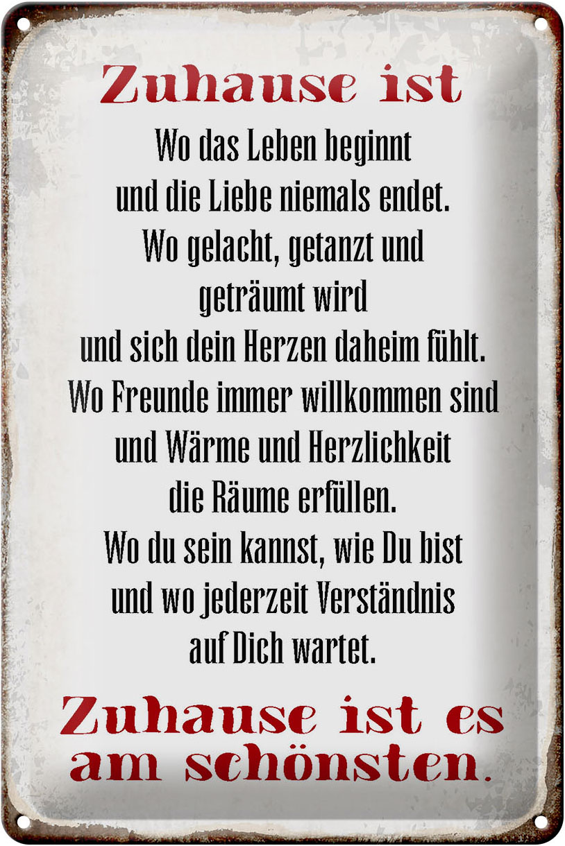 Schild Blech 20x30cm – Made in Germany – Spruch Zuhause ist am schönsten Metall Deko Schild