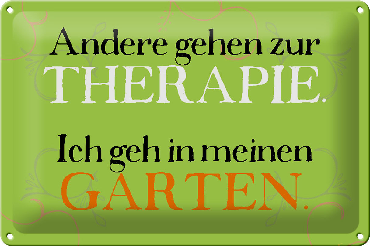 Schild Blech 30x20cm – Made in Germany – Spruch andere zur Therapie ich Garten