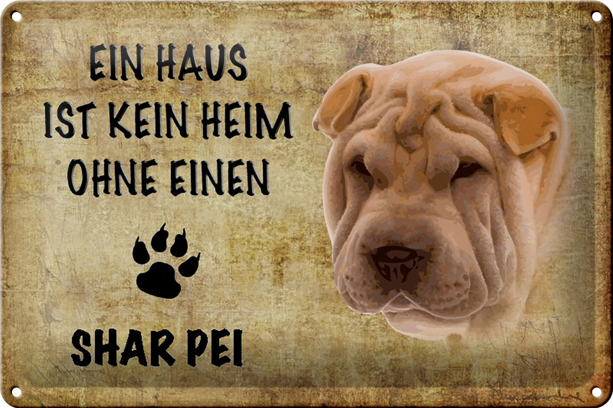 Schild Blech 30x20cm – Made in Germany – Haus kein Heim ohne Shar Pei Metall Deko Schild