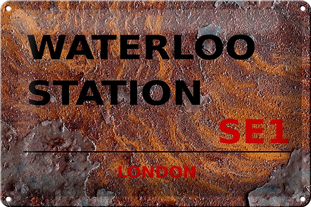 Schild Blech 30x20cm – Made in Germany – London Waterloo Station SE1 Rost Metall Deko Blechschild