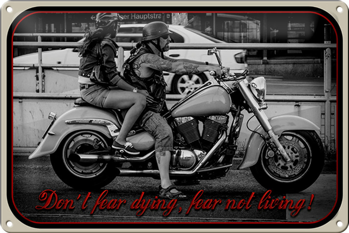 Schild Blech 30x20cm – Made in Germany – Motorrad Biker dont fear dying fear Metall Deko Blechschild