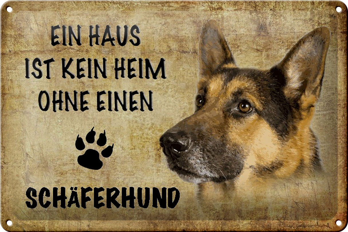 Schild Blech 30x20cm – Made in Germany – Schäferhund Haus kein Heim ohne Metall Deko Schild