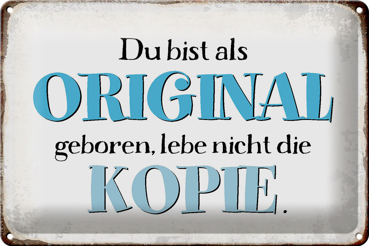 Schild Blech 30x20cm – Made in Germany – Spruch bist Original lebe nicht Kopie Metall Deko Blechschild