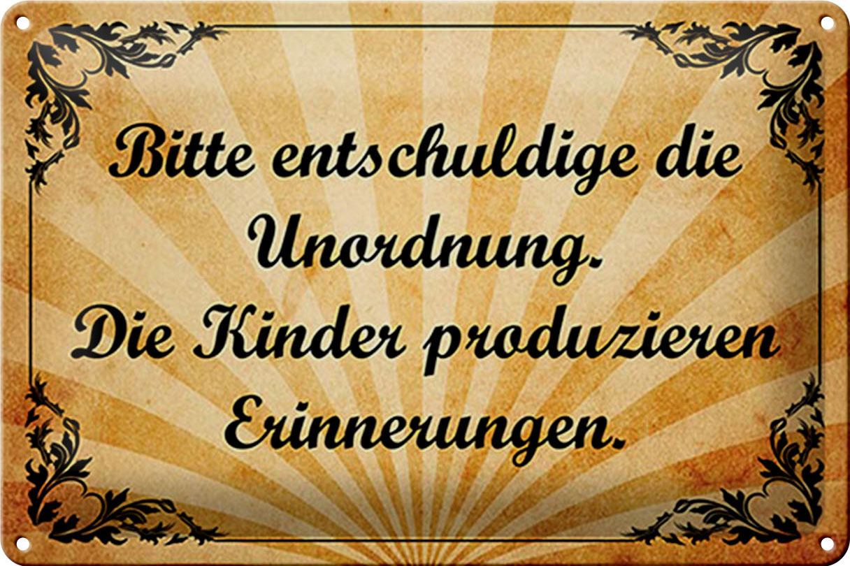 Schild Blech 30x20cm – Made in Germany – Spruch Bitte entschludige die Unordnung Metall Deko Blechschild