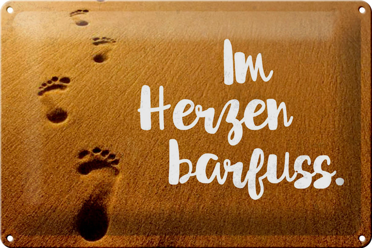 Schild Blech 30x20cm – Made in Germany – Spruch Im Herzen barfuss Metall Deko Blechschild