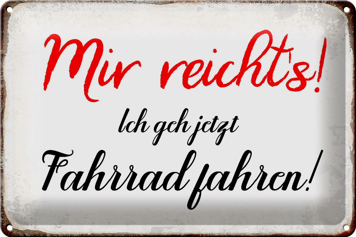 Schild Blech 30x20cm – Made in Germany – Spruch mir reichts ich geh Fahrrad Metall Deko Blechschild