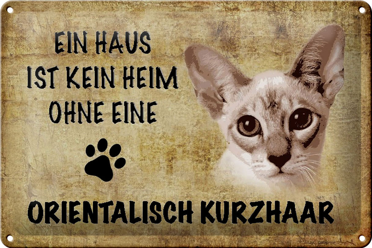 Schild Blech 30x20cm – Made in Germany – Spruch orientalisch Kurzhaar Katze Metall Deko Schild