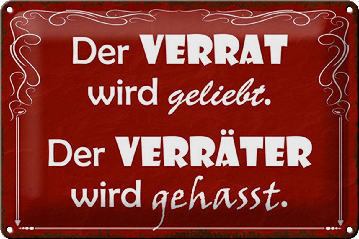 Schild Blech 30x20cm – Made in Germany – Spruch Verrat geliebt Verräter gehasst Metall Deko Blechschild