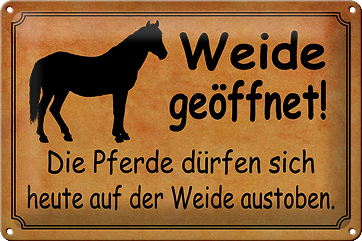 Schild Blech 30x20cm – Made in Germany – Spruch Weide geöffnet Pferde dürfen Metall Deko Blechschild