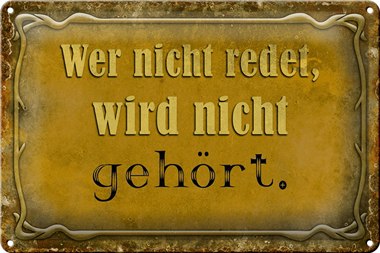 Schild Blech 30x20cm – Made in Germany – Spruch wer nicht redet nicht gehört Metall Deko Blechschild