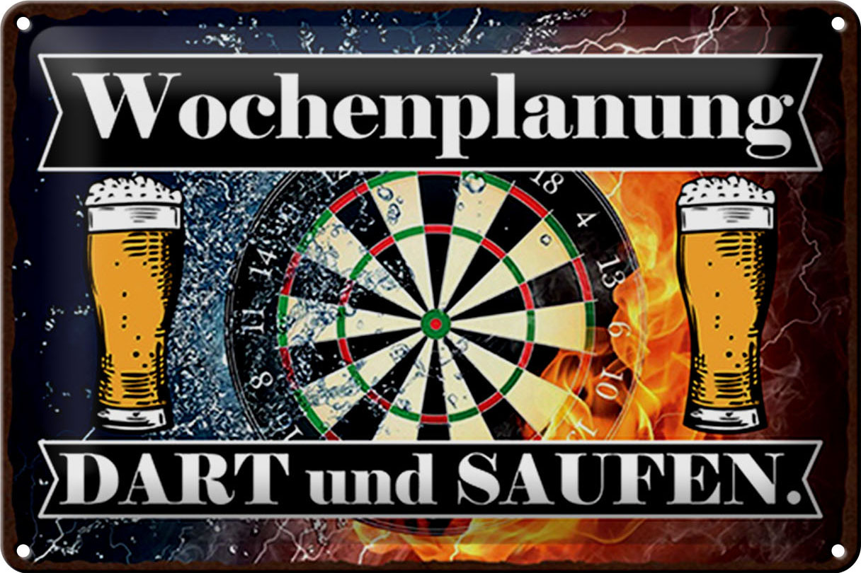 Schild Blech 30x20cm – Made in Germany – Spruch Wochenplanung Dart und Saufen Metall Deko Blechschild