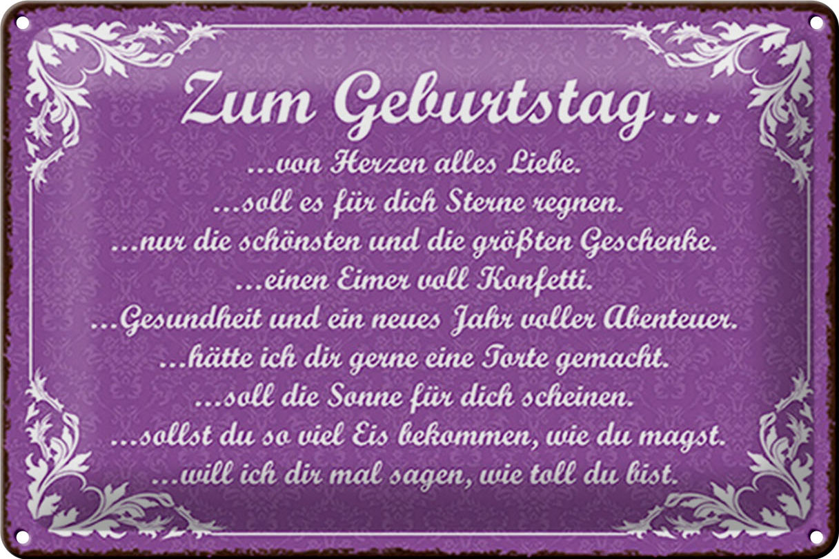 Schild Blech 30x20cm – Made in Germany – Spruch zum Geburtstag alles Liebe Metall Deko Blechschild