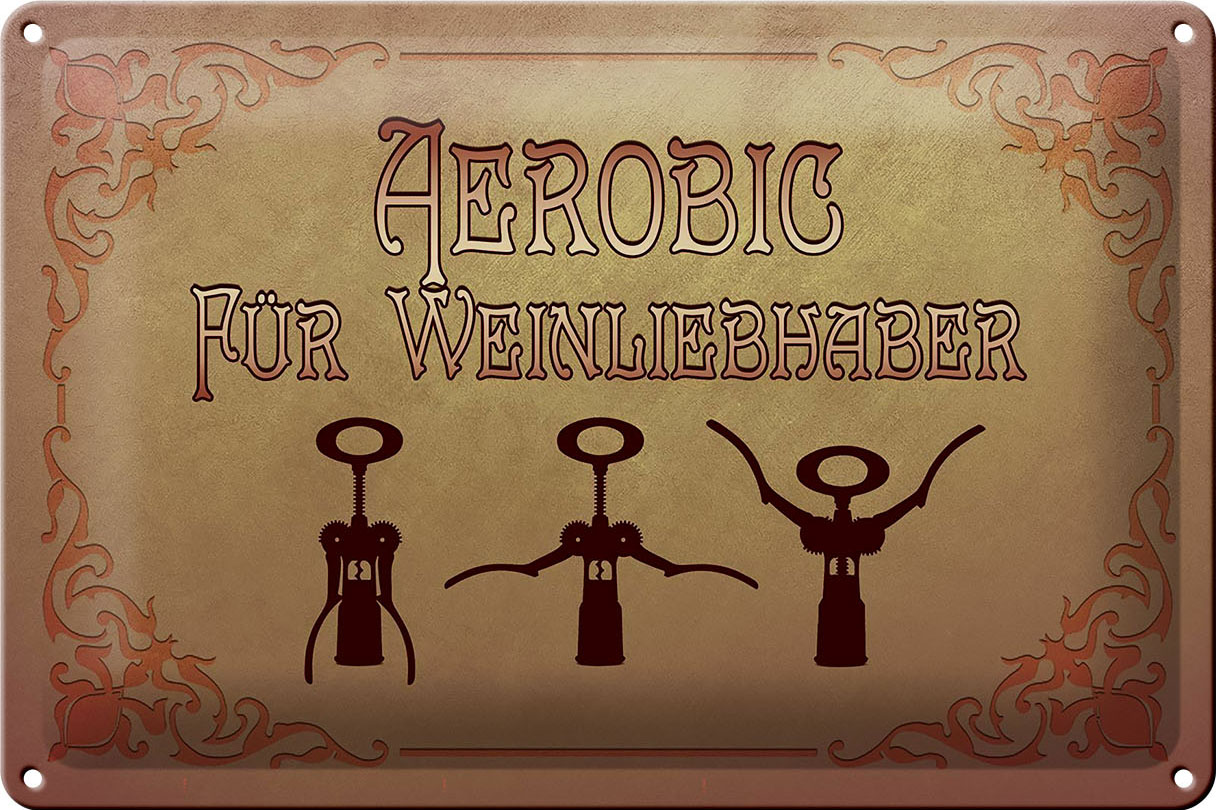 Schild Blech 30x20cm – Made in Germany – Wein Aerobics für Weinliebhaber Metall Deko Blechschild