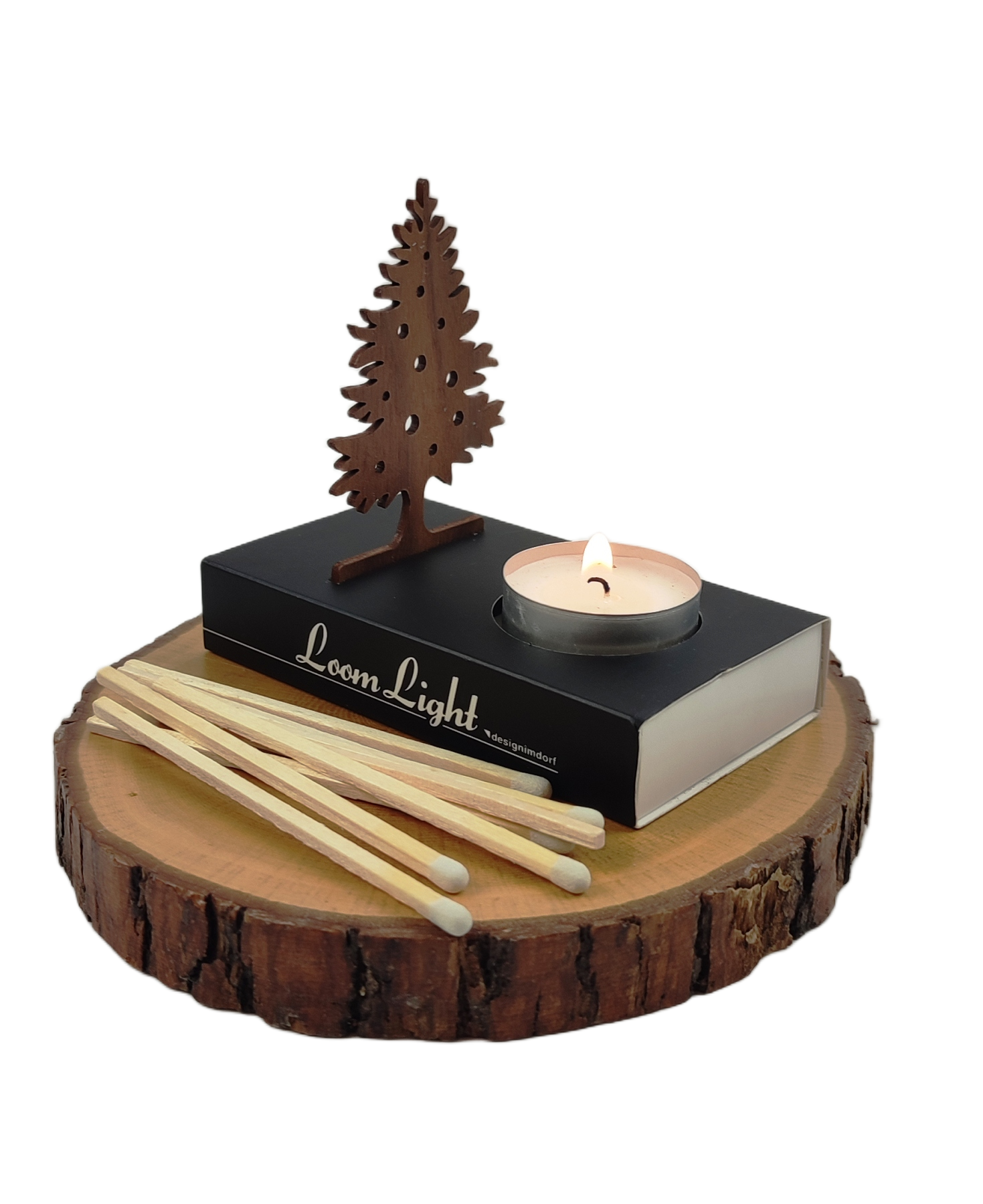 Ein Hauch von Waldromantik für Ihr Zuhause – der designimdorf Teelicht Halter Candlelight Tanne bringt natürliche Eleganz und warmes Licht in jeden Raum. Gefertigt aus edlem Nussbaumholz, besticht der Leuchter durch sein filigranes Tanne-Motiv, das eine behagliche Atmosphäre schafft.